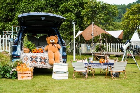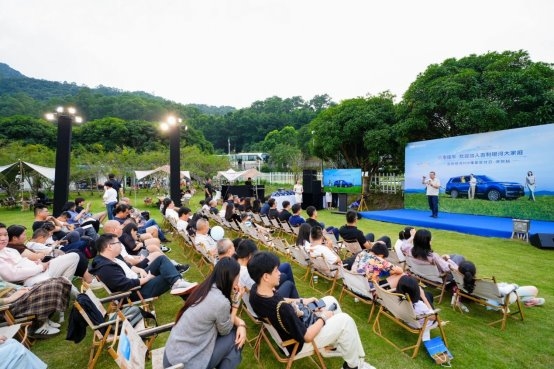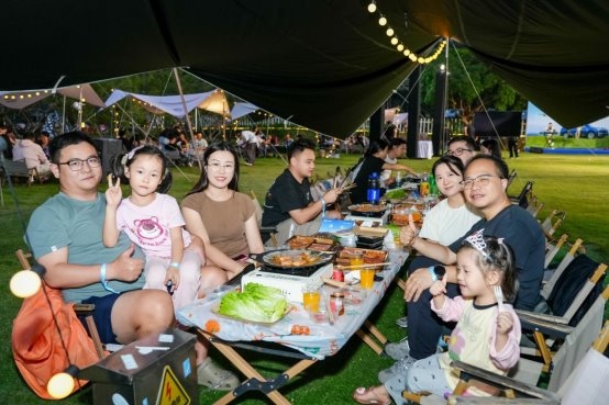 夜幕降临后,现场切换至氛围满分的露营派对与草地音乐晚宴。轻松乐队、户外灯串、精致餐食与篝火氛围,让车主与家人朋友在自然与城市交织的夜色中,共享温暖与浪漫。科技与生活在此刻温柔交汇。