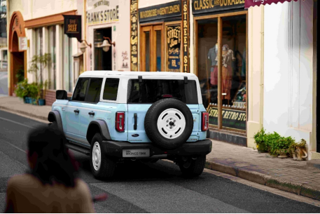 此外,福特烈马1966大胆演绎了撞色美学,以纯白车顶呼应经典格栅与细条纹拉花。尤为值得一提的是,其纯白车顶采用了国内首发的SMC复合材料喷粉工艺,通过创新引入导电漆层,实现了白色涂料的完美附着。这项后市场几乎无法复刻的独家技艺,宛如顶级奢侈品中难以仿制的专属工艺,为车辆构筑起了一道独特的价值护城河。
