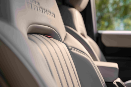 车内,福特烈马1966的内饰哲学与高级定制时装有着异曲同工之妙。其座椅造型汲取了众多顶级经典家具的设计灵感,兼具出色的设计感与乘坐舒适性;边缘采用的专属绲边工艺开发周期超6个月,工匠将误差控制在0.01mm以内,确保每一道曲线顺滑精致,标准甚至超越顶级奢侈品牌。同时,座椅绗缝工艺针对宽度、细节与角度历经10次验证打样,耗时10个月最终定型,配合“Bronco”专属身份铭牌与定制红色刺绣标牌,宛如高定礼服上手工缝制的品牌标签,于低调中彰显尊贵,在细节之处点睛奢华。